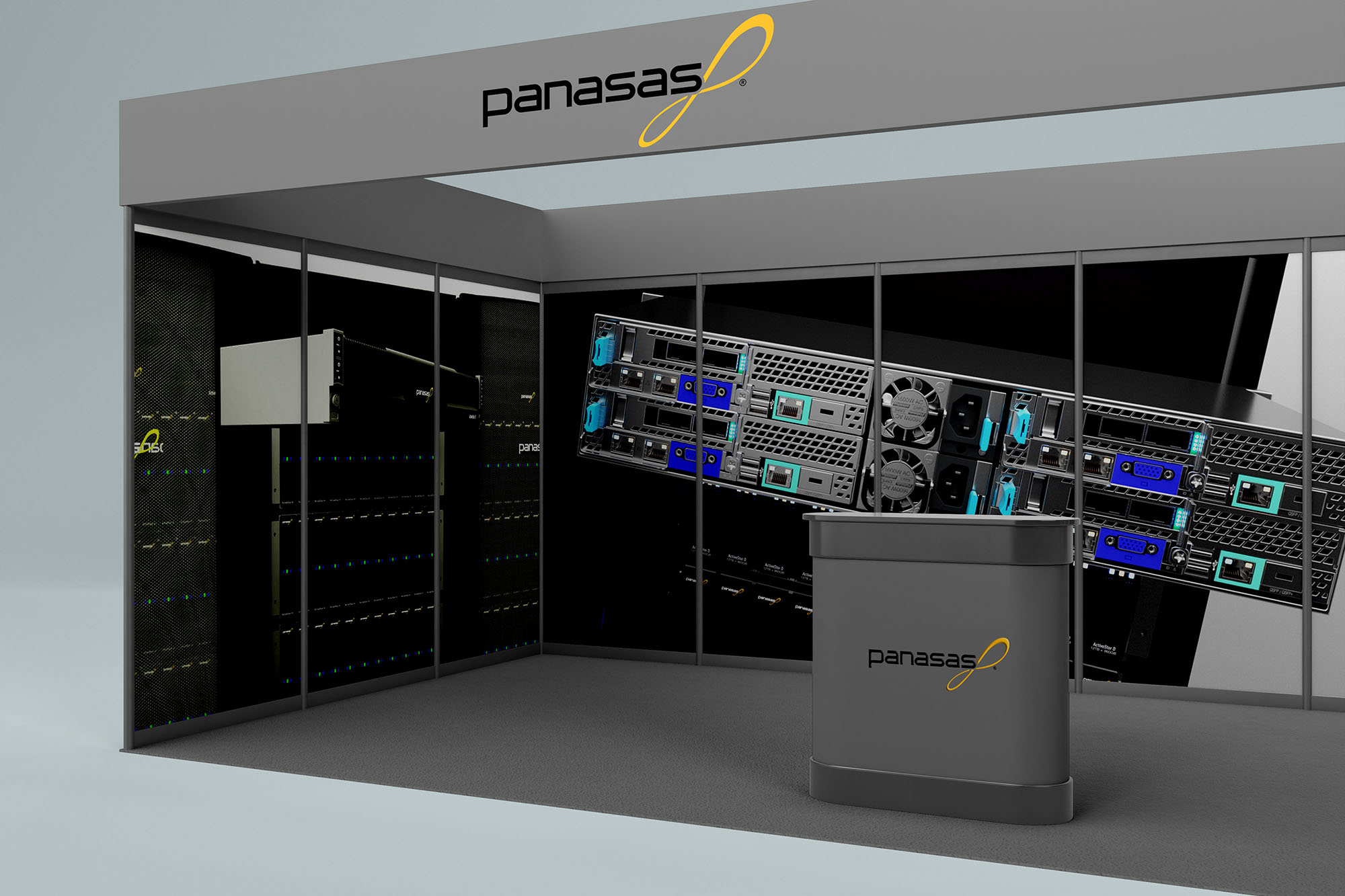 The Speakerhead team wanted to create a memorable presentation to give potential buyers the “Wow” experience. We decided to go into the VR space and invite users to experience the products firsthand. Exhibitors were able to walk into Panasas’ virtual server room. In addition, users were also able to open doors, pull out the racks, and manipulate them in full 360 degrees movements.